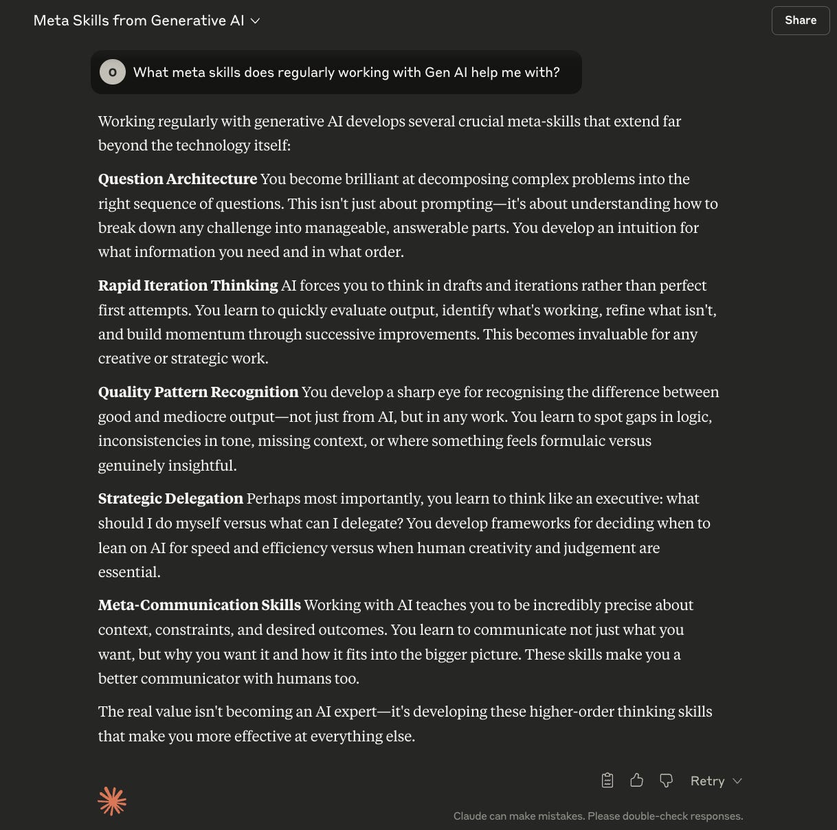 Well a good start, is that working with AI effectively develops very specific capabilities that transfer to everything else. Meta skills like: