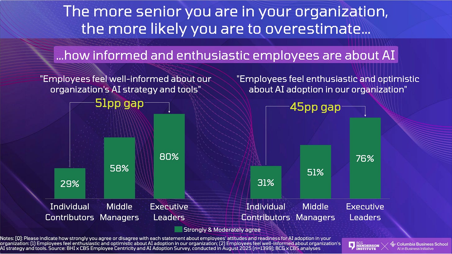 New research from BCG and Columbia Business School found that 80% of executives think their employees understand the company’s AI strategy. Only 29% of employees agree.