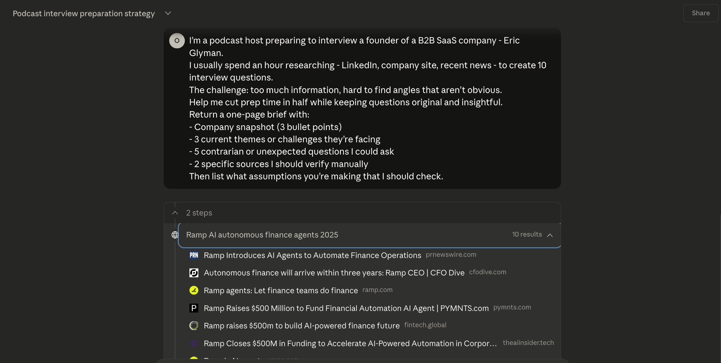 Here’s another one - I mentioned this example from my own work last week (I’ve used Ramp founder and CEO Eric Glyman as an example in Claude).